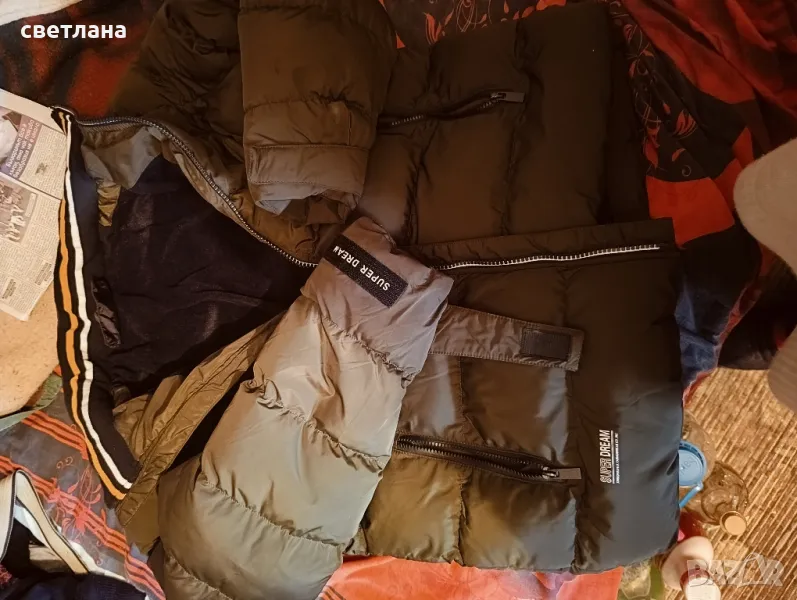 Малко носено като ново е. Цвета е тъмно зелен. С два джоба външни с цип и един вътрешен с копче