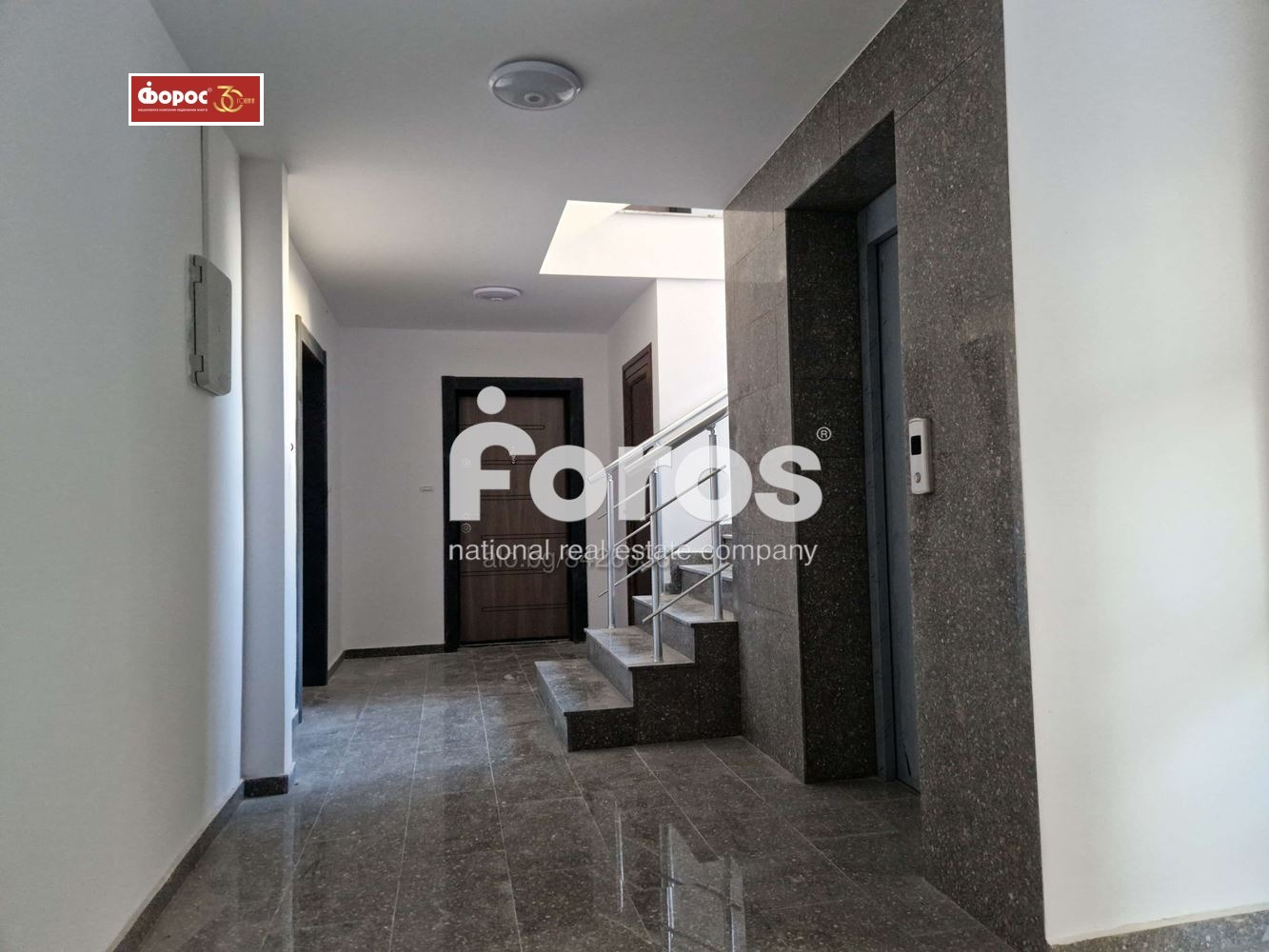Входна метална врата, тераси с теракот и метални парапети, общи части на сградата завършени на 100%, монтиран асансьор.