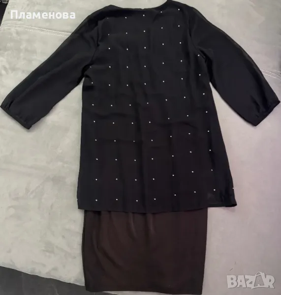 Има прозрачни 3/4 ръкави с ластик. Има камъчета отпред и на целия гръб. Подплатата отдолу стои много елегантно и може да се носи както с чорапогащник, така и с клин, по ваша преценка.