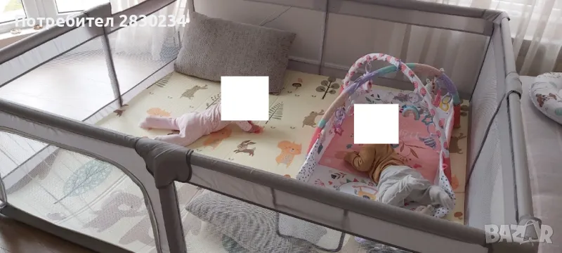 • В четирите ъгъла на кошарата са поставени силиконови вендузи, предназначени за залепване към пода. Това осигурява допълнителна стабилност и предпазва от възможно преместване.