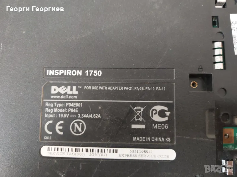 Продавам лаптоп на части DELL INSPIRON 1750 → Обява 48908800