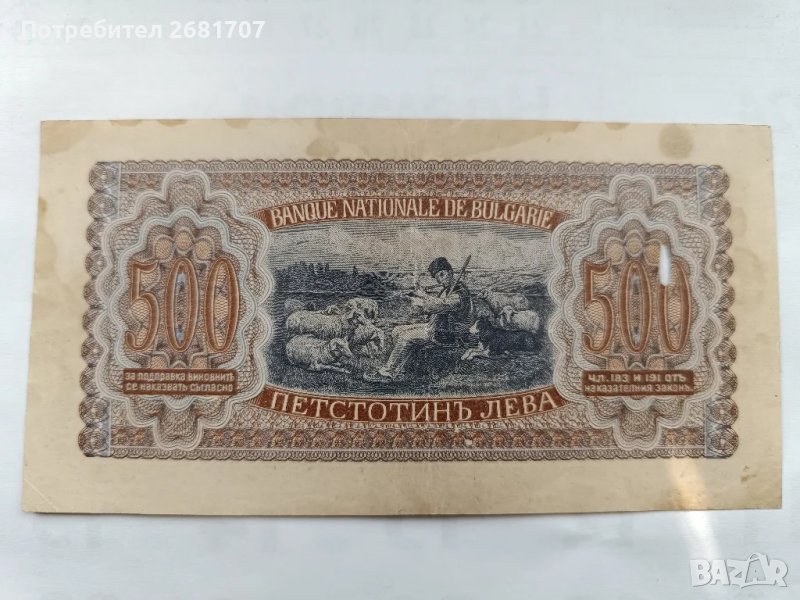 банкнота 500 лв 1943, снимка 1 - Нумизматика и бонистика - 48909369 банкнота 500 лв 1943, снимка 2 - Нумизматика и бонистика - 48909369 1/2