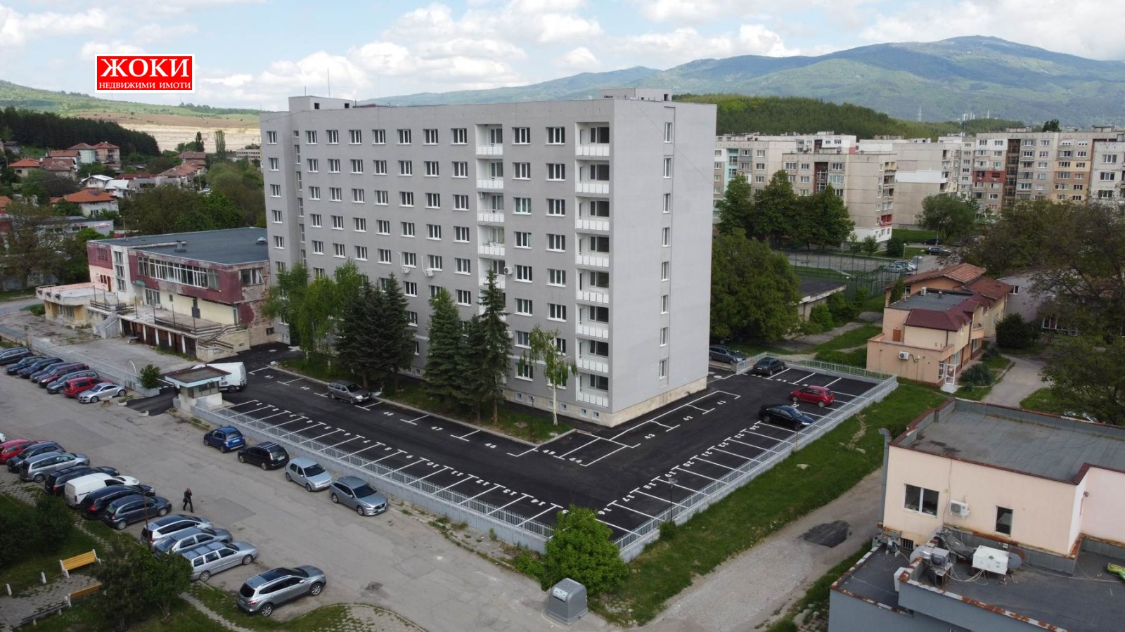 Агенция ЖОКИ предлага за продажба жилищна сграда в гр. Перник, кв. Изток, състояща се от 88 апартамента, разположени на 8 жилищни етажа в два входа. 16 апартаментите са тристайни /дневна и две спални/, а останалите са двустайни /дневна и спалня/, като повечето са продадени. Двустайните апартаменти са със застроена площ от 47 кв. м., тристайните апартаменти са със застроена площ от 80 кв. м.. Сградата е панелна, реновирана, нови електро и ВиК инсталации, с 10 см. изолация, нова дограма, нови асансьори и ново сензорно осветление. Жилищата са на саморазливна замаска и гипсова шпакловка. Сградата е с отлична локация, в близост до спирки на обществен транспорт до София и центъра на Перник, до училища и детски градини, супермаркети Фантастико и Кауфланд, магазини и заведения. Възможност за кредитиране от банки.