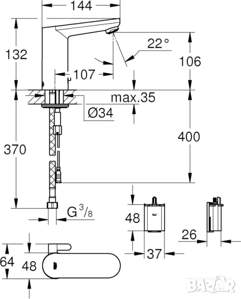 Инфрачервен смесител за мивка Grohe 36327001 Eurosmart Cosmopolitan.