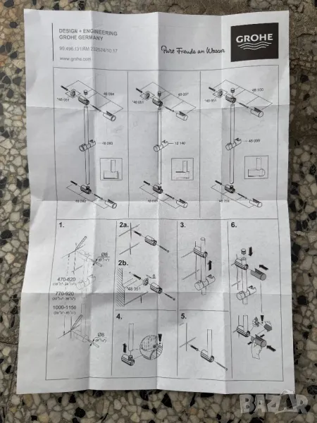 Тръбно Окачване Релса/Стойка/Колона за Ръчен Душ GROHE Euphoria, 770 - 920мм Хром 27500000!