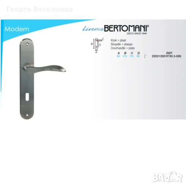 Дръжка за интериорна врата, Linea Bertomani, с щит и леко извити дръжки, снимка 1 - Интериорни врати - 48911014 Дръжка за интериорна врата, Linea Bertomani, с щит и леко извити дръжки, снимка 2 - Интериорни врати - 48911014 1/2