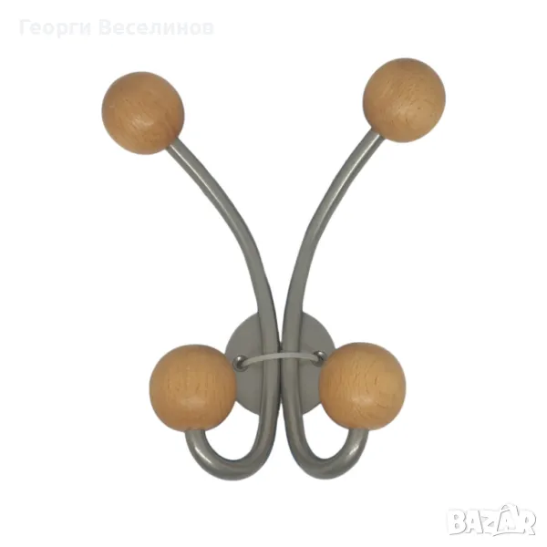 Съхранявайте своите палта на тази извита закачалка с две двойн куки. Закачалката е с размери 180x150 мм и се вписва чудесно във всеки интериор – както класически, така и модерен. Метално сивата боя и топчетата от бук върху куките създават изключително елегантен вид.