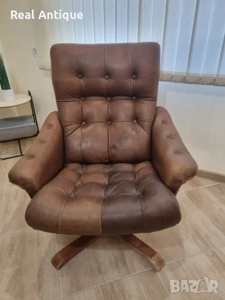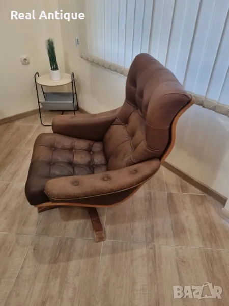 Много стилно шведско кресло от 70-те години на миналия век, накланящо и въртящо се проектирано и произведено от Göte Möbler.