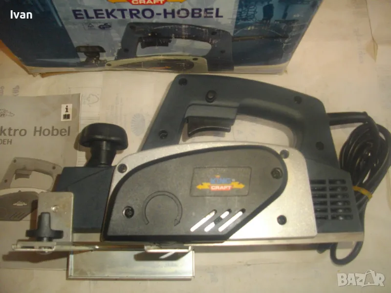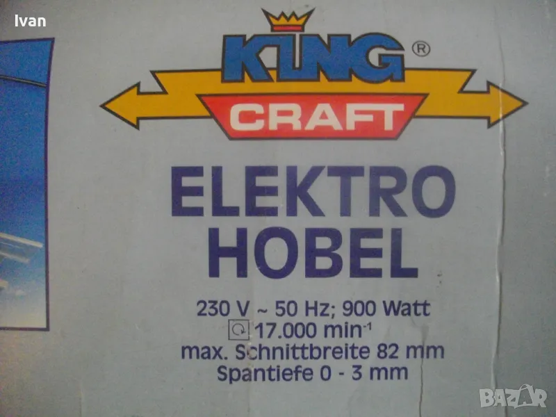 ОПИСАНИЕ на ново немско в кашон Кинг Крафт - 900 вата.. Съвсем ново, неизполвано и неупотребявано голямо професионално 900 ватово електрическо ренде-гредово-машина хобел, с оригиналната си стойка/водач/ограничител ширина, силен и мощен немски оригинален модел на Кинг Крафт с голяма възможност за стружуване - до 3 мм. Марка и модел на машината - King Craft WE900EH - ELECTRO HOBEL.