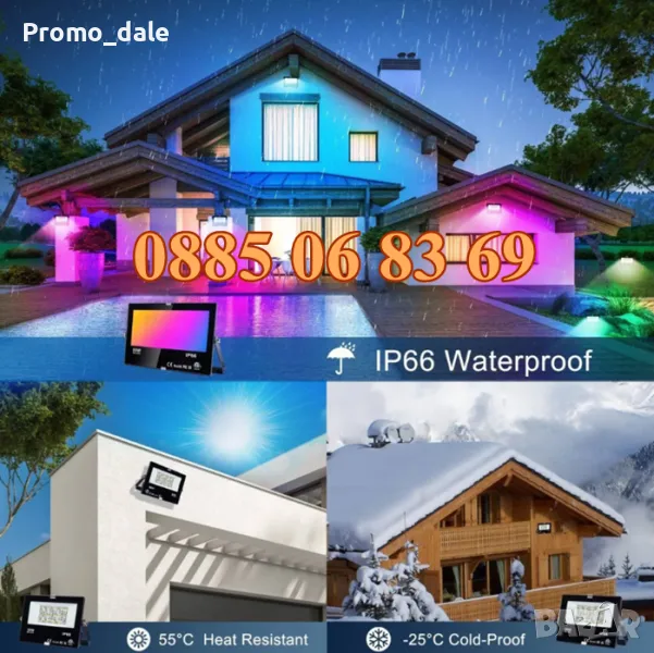 LED RGB прожекторите с дистанционно управление са предназначени за външна и вътрешна употреба. С модерен дизайн, изработени от устойчиви на атмосферни влияния материали, тези външни LED прожектори осигуряват качествено и разнообразно осветление. Корпусът е изработен от отлят алуминий и стъкло, устойчиви на надраскване и избледняване. Специалното покритие защитава прожектора от електростатичен разряд и корозия. Може да се използват за добавяне на светлинен акцент или декоративен ефект в двора, градината, барбекюто, оградата около дома или неговата фасада и редица други приложения (домашно, търговско или промишлено).