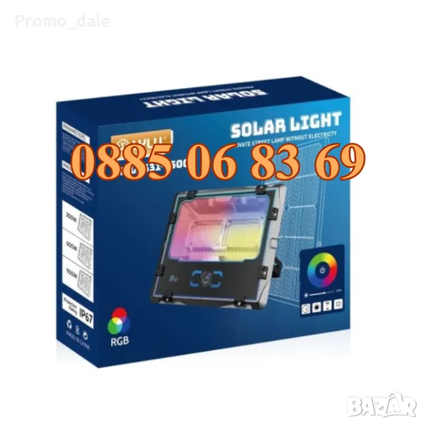 Многоцветен соларен прожектор с отделен панел 200W, прожектор 200W с WiFi
