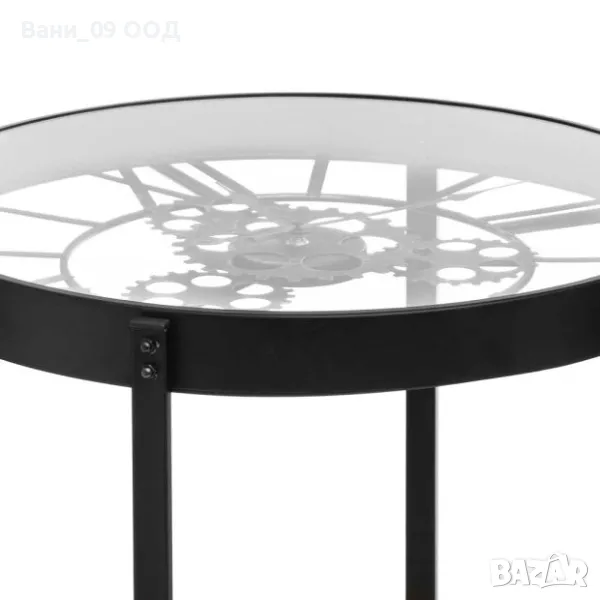 Страхотна холна масичка с часовник, изработена в индустриален дизайн и компактни размери - 50/50/51 см