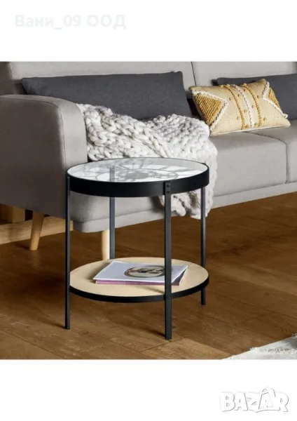Масата не само привлича вниманието със своя изтънчен дизайн, но също така е и практична – перфектна за кафе, книги или декоративни акценти.