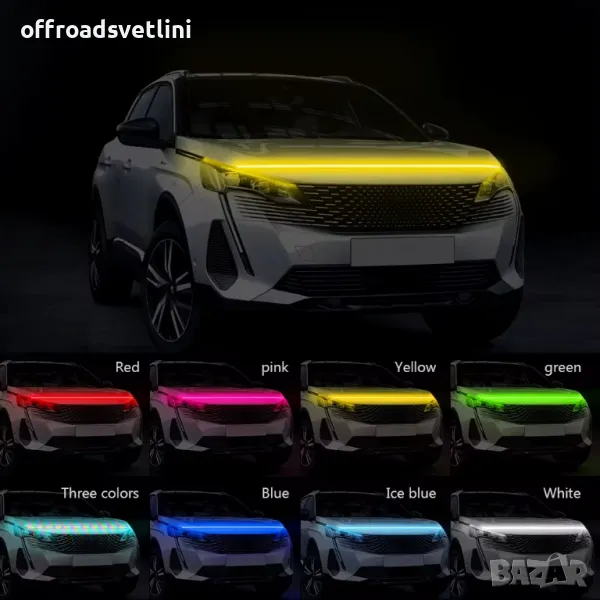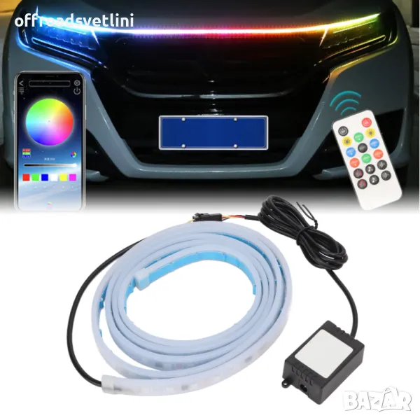 лед лента за преден капак, rgb diodna lenta za preden kapak, rgb гъвкава диодна лента за преден капак, дневни светлини за леки коли и бусове, диодна лента за преден капак с мобилно приложение и RGB цветове