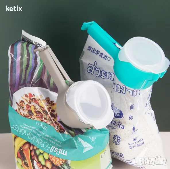 Лесно прикрепяне Лесно се прикрепя към всяка пластмасова или хартиена торбичка, затваря и след това просто запечатва храната или отваря горния капак, за да изсипе храната. Те се изливат добре, стоят добре затворени и са наистина полезни.