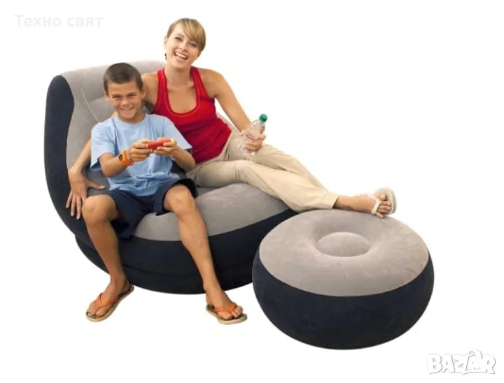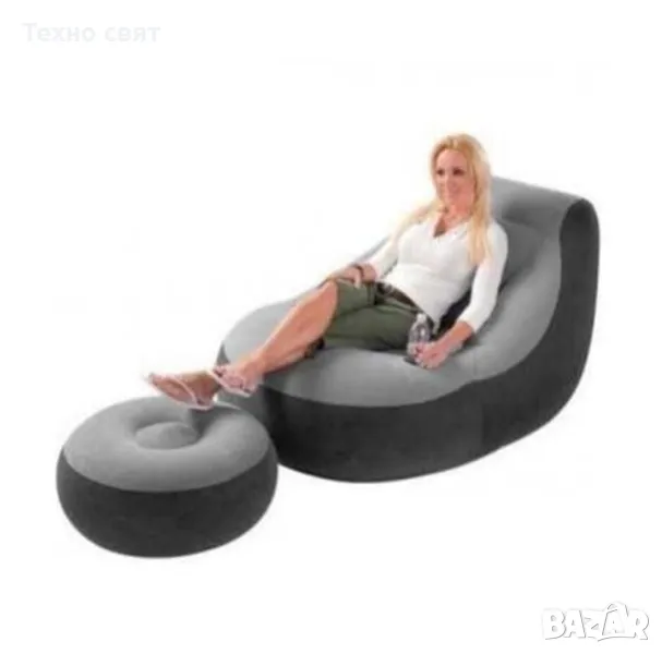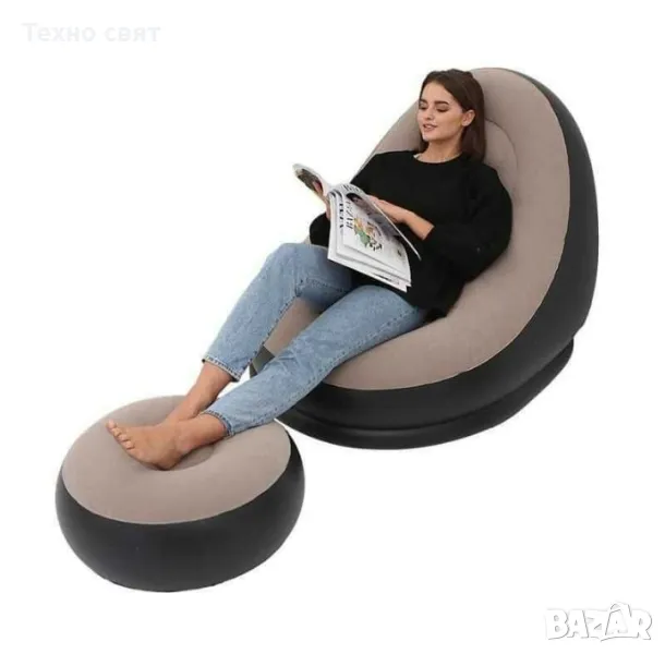 Стилен надуваем сет фотьойл и табуретка в сиво черно. С удобен и елегантен дизайн и мека материя за повече комфорт. Идеален за употреба на закрито или на открито.