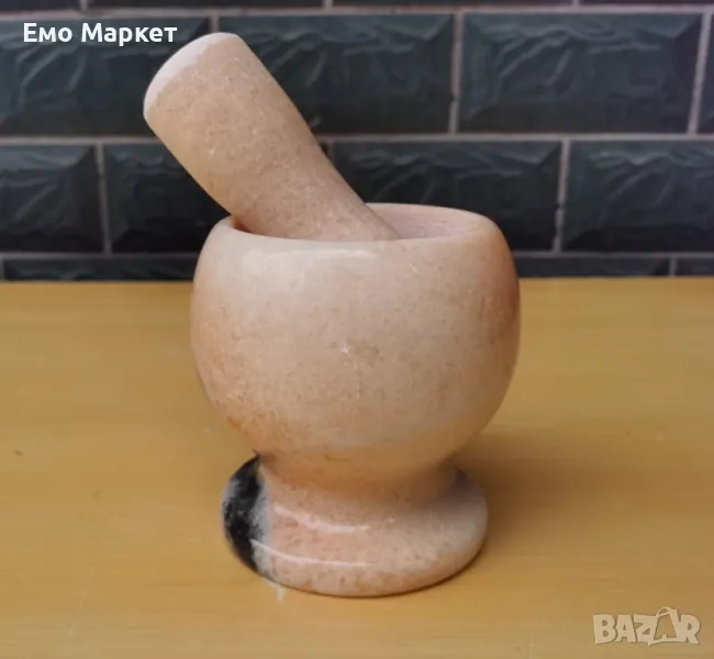 Изработено от естествен камък, осигурява ефективно стриване на подправки, билки и чесън, запазвайки автентичния им вкус и аромат.