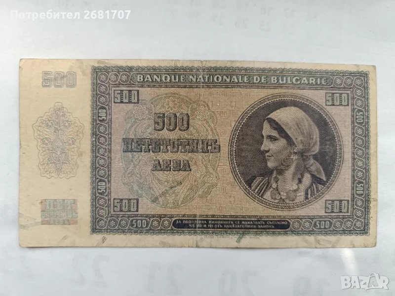 банкнота 500 лв 1942 → Обява 48919230