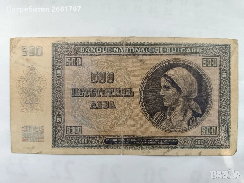 банкнота 500 лв 1942 → Обява 48919279