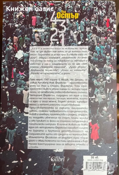 “4 3 2 1“ е голямата книга на живота ми. Чувствам, че цял живот съм чакал, за да напиша тази книга. Подготвях се за нея през всичките тези години“, твърди големият американски писател Пол Остър по повод последната си творба.