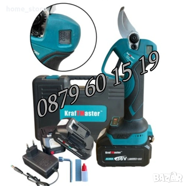 Градинска/Лозарска Акумулаторна Безчеткова Ножица на Батерии 36V – Лозарска ножица за рязане на лозови пръчки