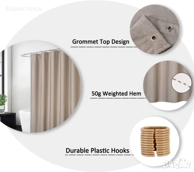 Сервирайте добре: Третирани за отблъскване на водата и устойчивост на накисване. Това поддържа вашата завеса за душ свежа и чиста и подходяща за среда с висока влажност. Не само функционален, но и модерен.