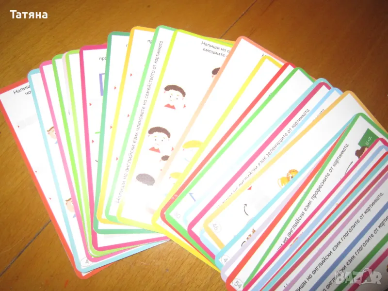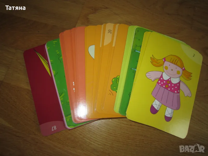Върху картите има задачки,с които те могат да се справят в зависимост от възраста/написана е върху кутиите от 3-5г;от 5-6г;от 4-7години.За тази цел върху картите може да се пише и рисува многократно с фулмастер или маркер ,който може да се изтрива с мокра