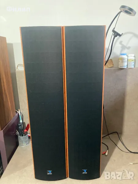 В много добро състояние, към тях давам и 2 х 3 м. kолонен кабел QED
