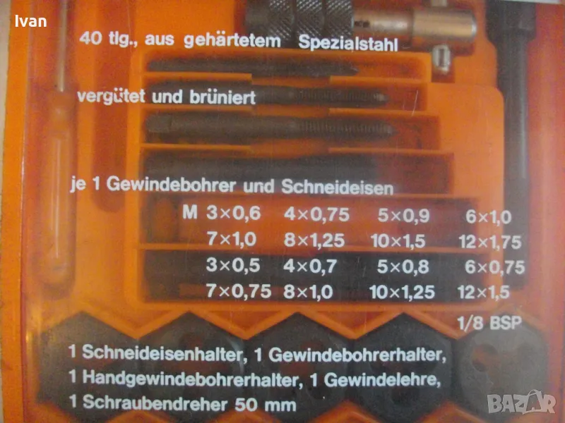 ОПИСАНИЕ на комплект в оранжева кутия. НАЛИЧЕН. Немско старо висококачествено производство. 129 лв. Нов, неизползван, неупотребяван. Закалена инструмнтална стомана е материала на