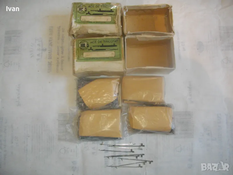 ОПИСАНИЕ на игли за плетачна машина - 99 лв/100 бр. игли. Кутии с нови плетачни игли - за ръчна плетачна машина. Иглите са старо качество, румънско произовдство. Марка FAT. ACE DE TRICOTAT