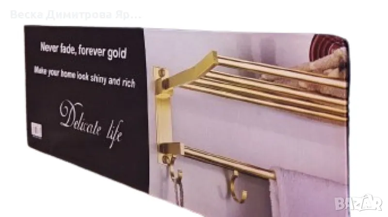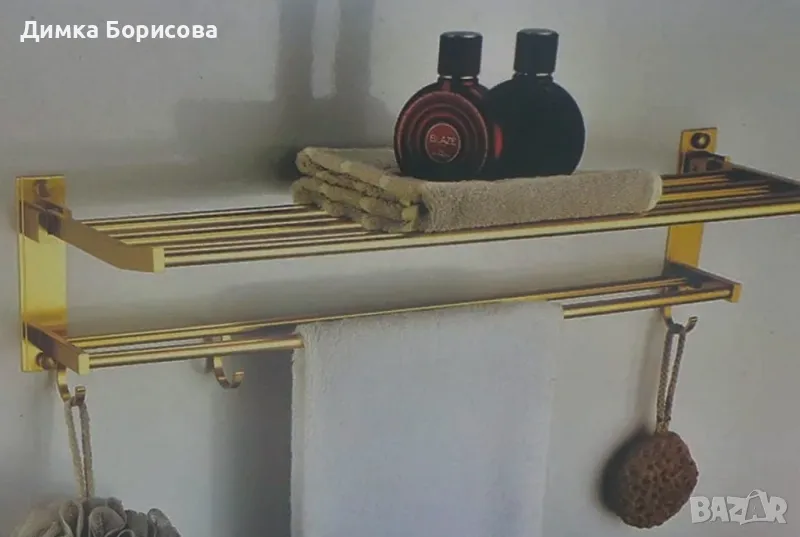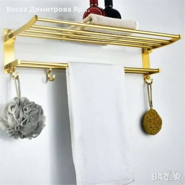 Двуетажна алуминиева поставка за хавлии със златно покритие и 4 куки → Обява 48922699