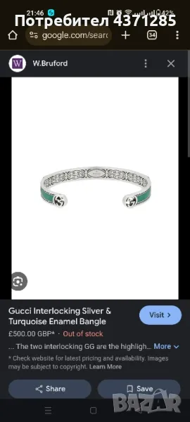 гривна stainless steel с Gucci мотиви → Обява 48923277