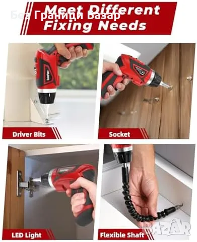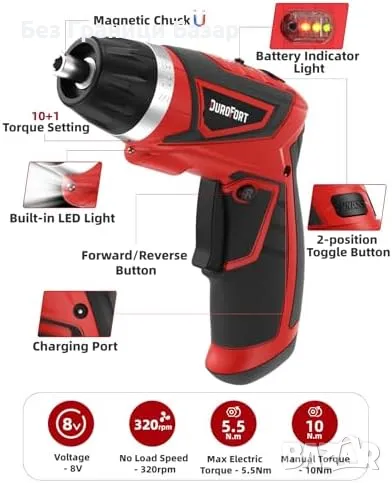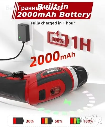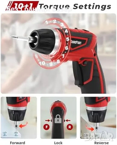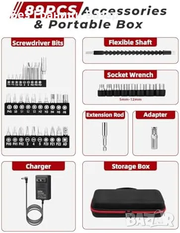 Нов DuroFort 8V Акумулаторен Винтоверт + 89 Аксесоара, LED, Гъвкав Вал