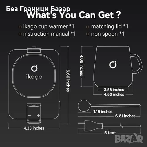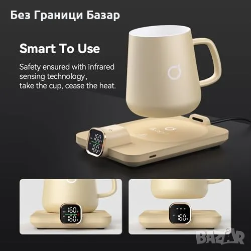 Автоматична защита: Интелигентно изключване след 15 минути без чаша или 2 часа неактивност.
