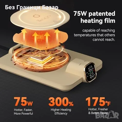 Бърз и ефективен нагревател: 75W мощност за бързо затопляне и поддържане на желаната температура.