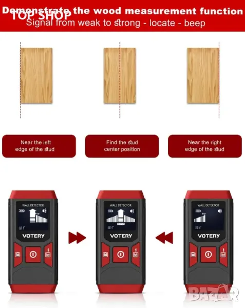 Стенен скенер Votery Stud Finder SF02- кабели, метал, тръби, дърво