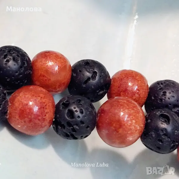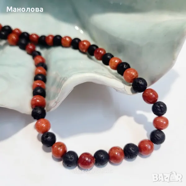 Колие от маниста вулканичният камък Лава и червен корал.