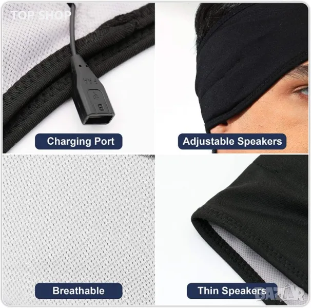 【Усъвършенствана безжична технология 5.0】 Безжичната технология направи значителен пробив в това поколение слушалки за сън. Спортна лента за глава се сдвоява с всеки безжичен смартфон или таблет по-бързо и по-лесно. 45 фута безжичен обхват, ултраниска мощност, вградена акумулаторна батерия с голям капацитет от 240 mAh.