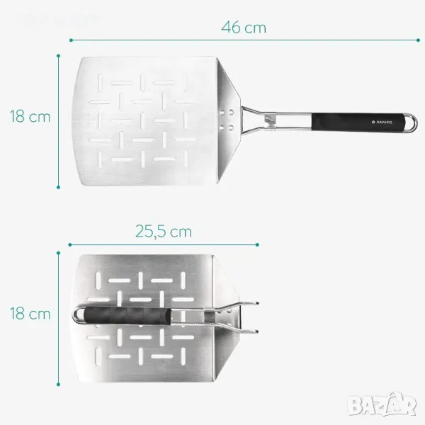 Лопата за пица Navaris, сгъваема неръждаема стомана – 46 x 18 см – сгъваема лопата с изключително го