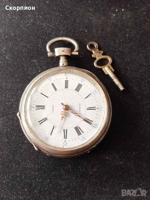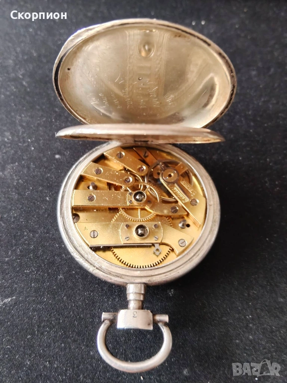Швейцарски джобен часовник с посребрени капаци 1905г. - 10 РУБИНА → Обява 48925860