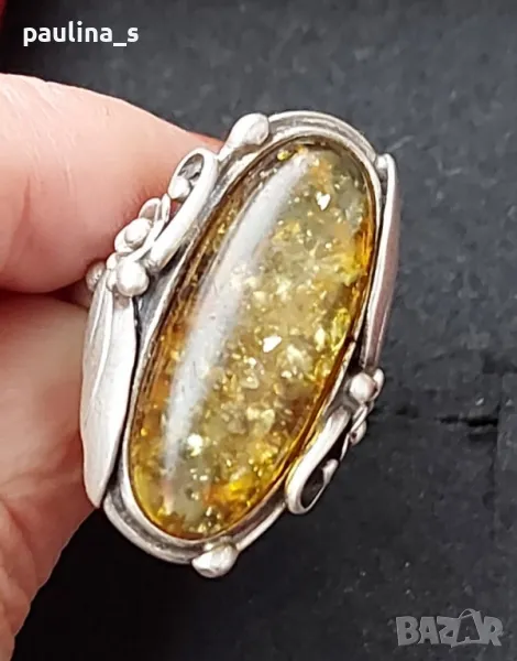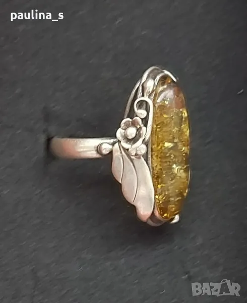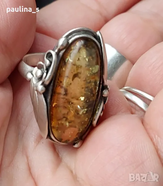 сребърен пръстен с Кехлибар. Цената е крайна 199,99лв / 100 евро. Налични две маркировки. Вътрешен диаметър 19,7мм. На живо е хипнотично красиво бижу. Не се продава на грамаж. Има антикварна стойност и цена.