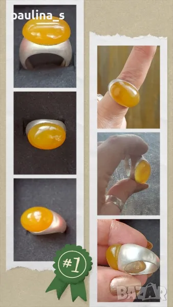 2️⃣ . Колаж / Винтидж / Сребърен пръстен с яйчен кехлибар / проба 925. Цената е 196,99лв / 98,5 евро. Сребърен пръстен проба 925, с яйчен кехлибар. Изключително рядка находка. Масивен, винтидж и много цененен. На друго място, при подходящ купувач, цената може да бъде тройна! Размер 19мм / 9. ЦЕНАТА Е КРАЙНА!