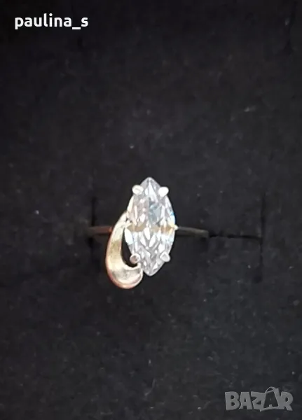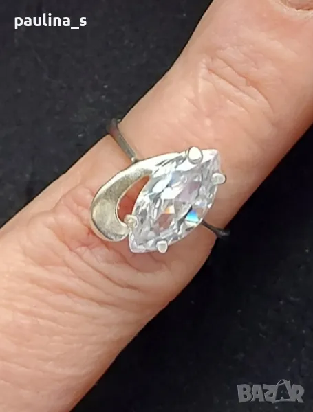 сребърен пръстен с циркон с шлифовка Маркиза. Моделът е разчупен и много красив. Вътрешен диаметър 17мм / размер 7. Не се продава на грамаж, мащабирането е на дланта.