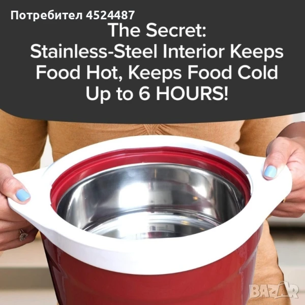 Тази невероятна купа запазва горещата храна гореща и студената храна студена до 6 часа.