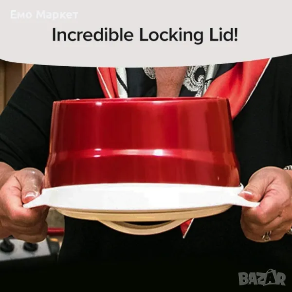 Заключващия се капак остава сигурно на място и запазва ниските или горещите температури вътре в купата.