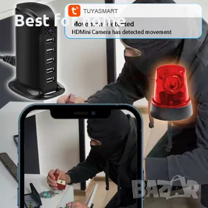 Скрита камера WiFi 5-портово USB зарядно устройство HD камера 1080P шпионска камера Преносимо USB зарядно устройство Мини WiFi камера с поддръжка на откриване на движение Tuya Smart APP