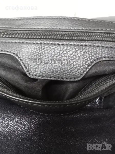 Чантата не е употребявана, марка Paolo Botticelli. Може да се носи на двете къси метални дръжки в разгънато положение-тип "торба". Сгъната може да се носи само на дългата дръжка. Изработена е от кожа, текстил и метал, със качествена подплата от плат.