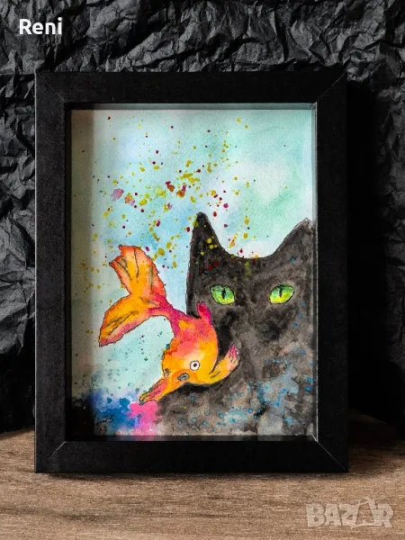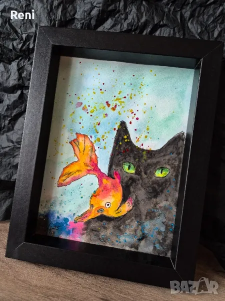 Авторска рисунка техника акварел и туш. Не е принт! Фина детайлна ръчна рисунка - оригинал! Рамката може да варира по вид.