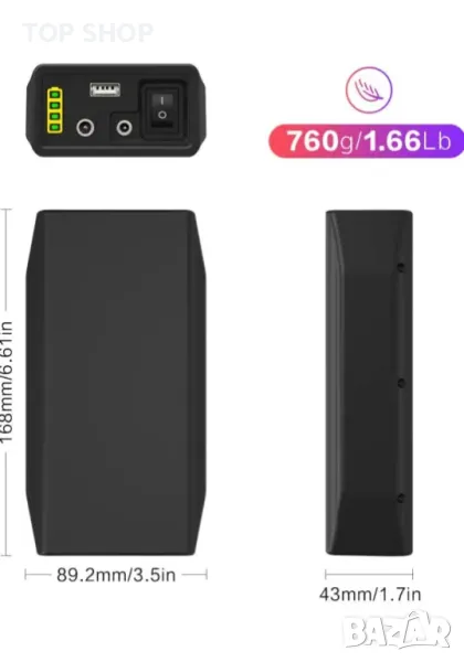 Съвместим с LED лента, цифрови камери/камери за видеонаблюдение, камера за управление, 12 волтов HDTV, преносим телевизор, осветление на кабината, Bluetooth високоговорител, 12/9 волтова помпа, помпа за кърма Spectra S2, търсачка за риба или повечето 12V/9V/5V DC електронни устройства . Може да бъде вместо обичайната оловно-киселинна батерия. Това ще донесе много удобно изживяване на потребителите.