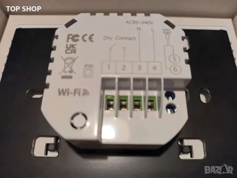 ОПИСАНИЕУмен WiFi термостат и терморегулатор на температурата с LCD екран с подсветка за бойлер или електрическо отопление работи с Google Assistant, Alexa и др. Лицевия панел е изцяло от стъкло.Многофункционален ъпгрейд4,8-инчов голям цветен LCD екран с подсветка, регулируема яркост, лесен за четене.Мултифункционален индекс: време, UV индекс, показване на влажността, помага ви да определите какво да облечете днес.Инсталационна кутияТози термостат е подходящ за всички монтажни кутии с хоризонтална стъпка на монтажните отвори 120 mm.Характеристики:WiFi контрол на температурата чрез Tuya SMart или Smartlife App, за Android и за iOS.Дистанционно управление чрез мобилно приложение или компютър (WIFI), управлявайте температурата на дома си от всяка точка на света.Програмируемост: 5 + 2 програмируеми периода максимизират комфорта и икономията. програмите гарантират комфортна температура, повече възможности, повече гъвкавост;Поддържа споделяне на устройства.Точна температура: 1°C Точността поддържа температурата в рамките на зададеното от вас ниво;Без ограничения за добавяне на стаи и поддръжка на Smart Scene.Подходящ за котли работещи на газ и пелети, подови отопления и други уреди• Съвместим с: Alexa и Google Assistant.• Контрол на отоплението на помещенията по интернет.• Лесен за използване чрез смартфон или таблет.• Лесна инсталация с проста подмяна на съществуващия